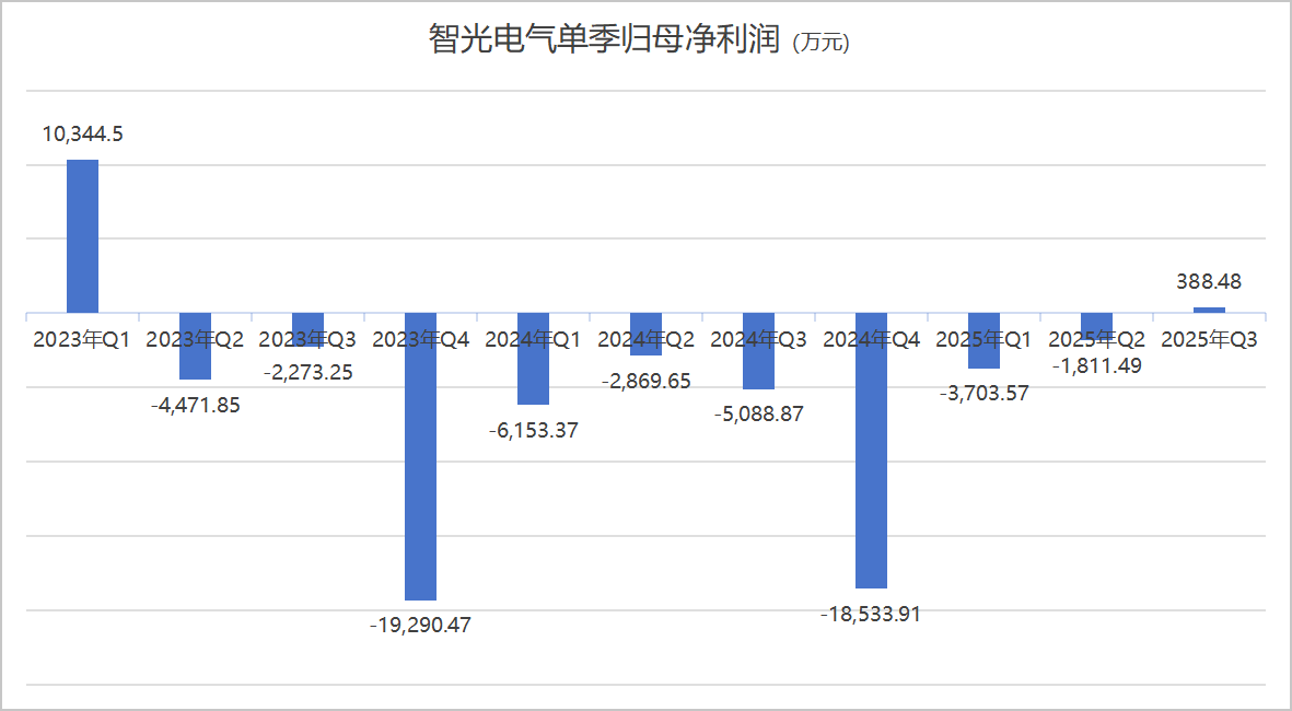 智光电气第三季度归母净利润为388.48万元,这是公司在连续9个季度的亏损后,首次单季盈利。