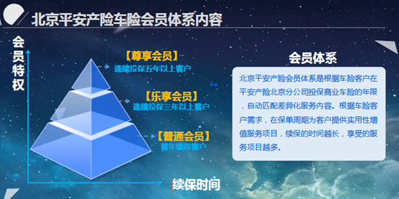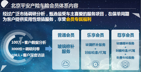 在这类增值服务的基础上,平安产险北京分公司近期推出了首个车险会员体系,首次给“车险”办会员。