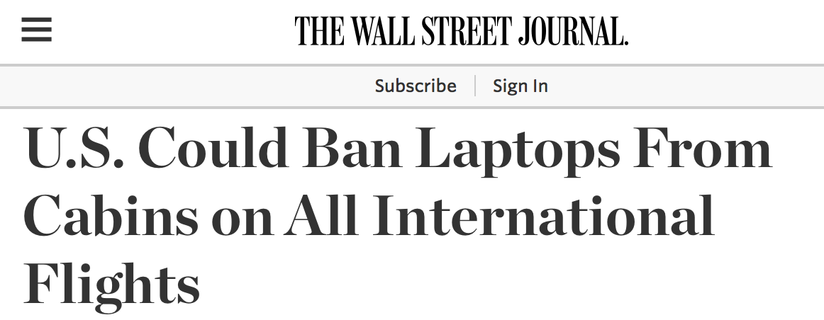 今年3月,美国禁止来自中东和北非10个机场的乘客携带超过手机大小的电子产品乘机。随后英国也针对六个国家发布了类似禁令。美国国土安全局月初表示,正在考虑扩大此禁令范围。根据熟悉航空安全规范的人说,美国当局担心,隐藏在电子设备中的爆炸装置可以会在机舱内手动触发,或在飞机上通过使用电源插座引爆。