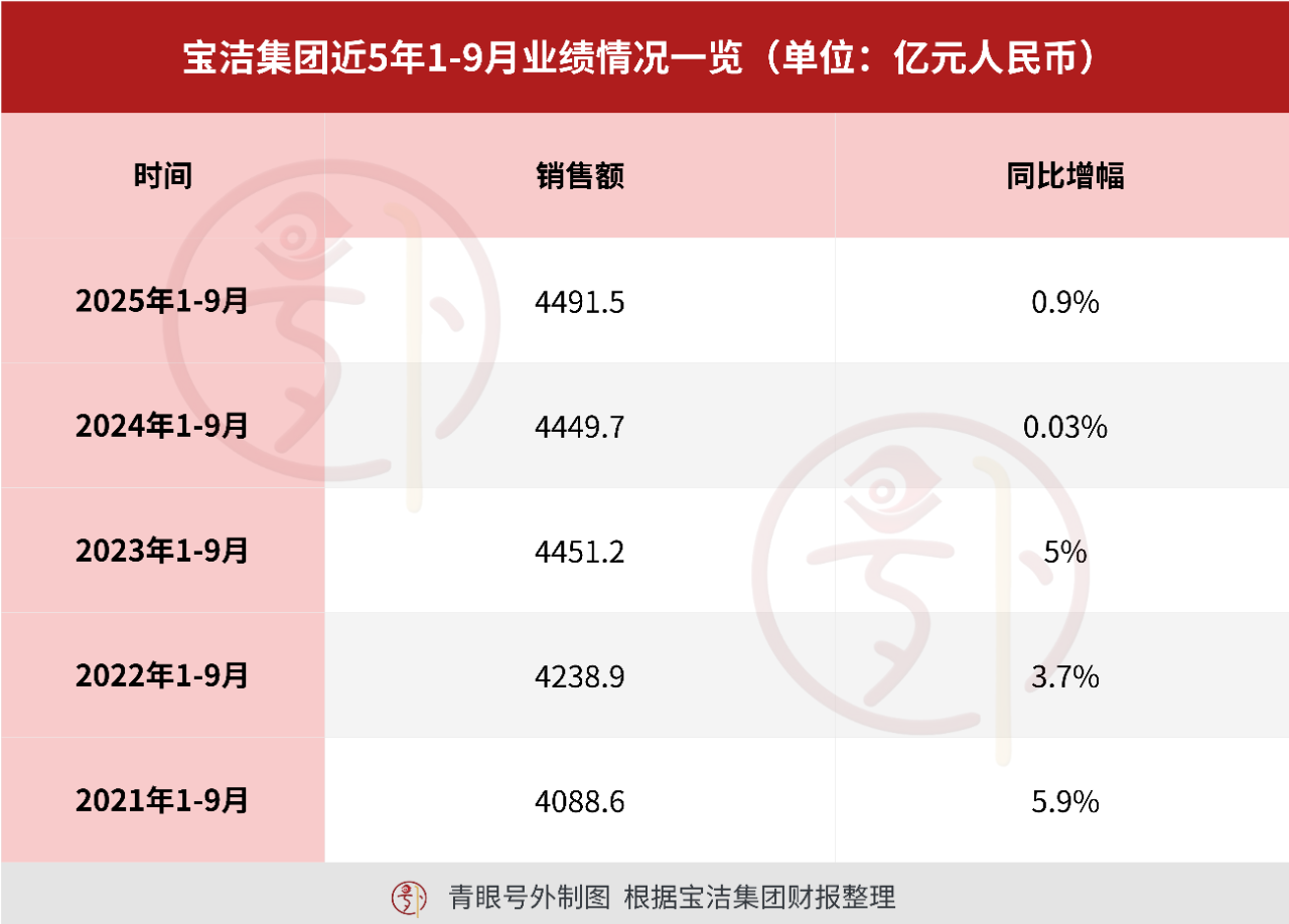 结合此前发布的财报,宝洁在2025年1-9月的净销售额合计为4491.5亿元,同比微增0.9%。值得关注的是,这也是宝洁近5年同期创下的最高值。