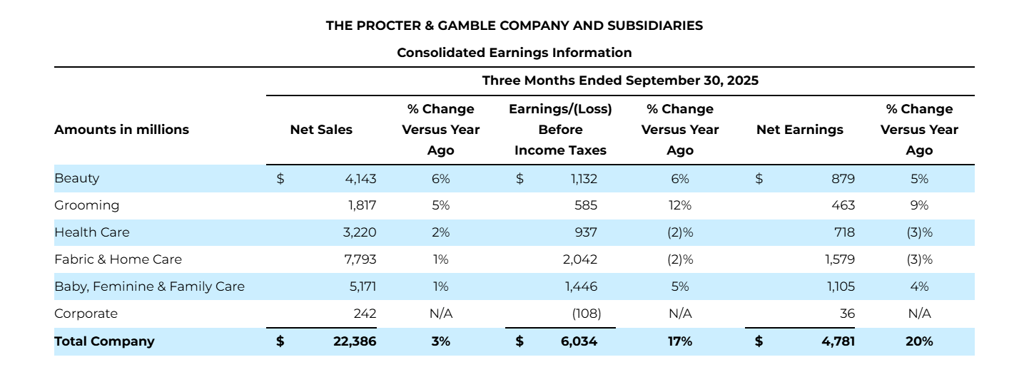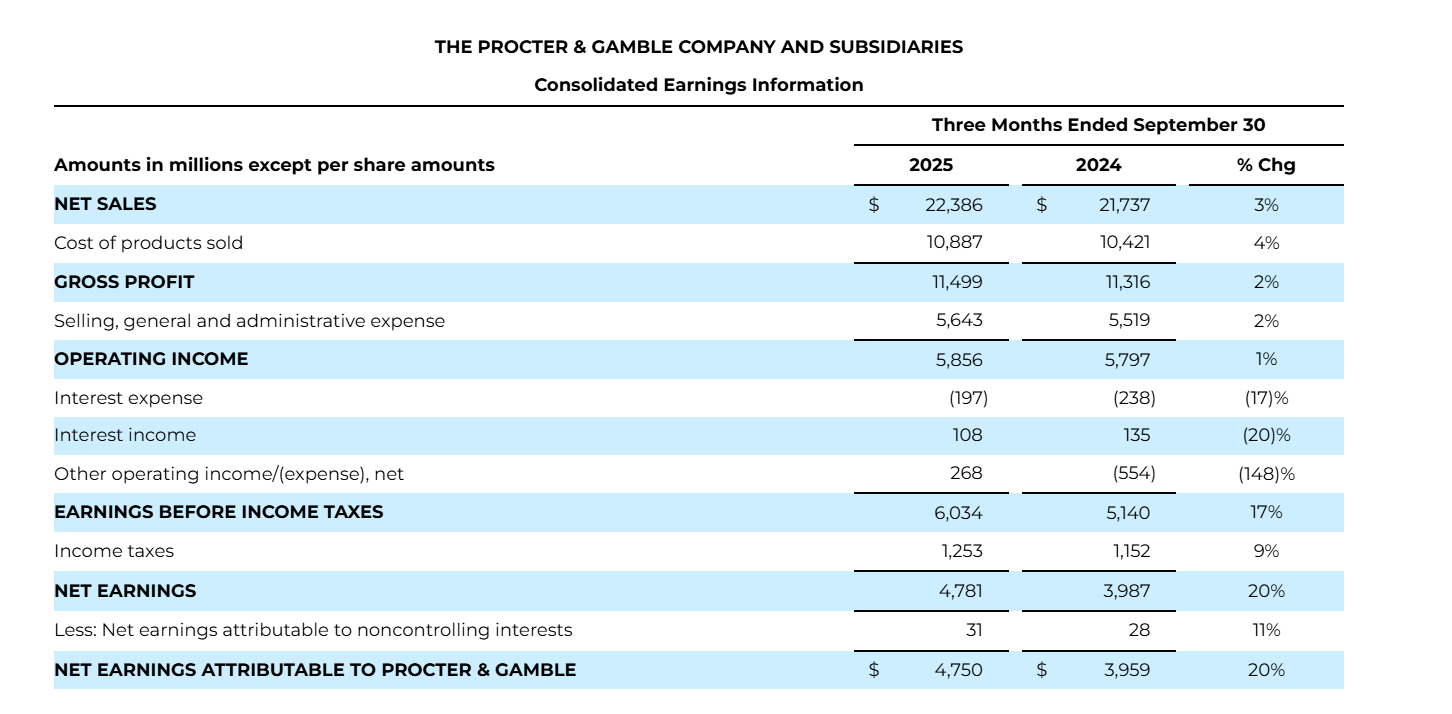 可以看到的是,今年的7-9月,宝洁以一份不错的财报成绩单一扫去年同期净销售额、净利润均下滑的“阴霾”,为2026财年开了个好头。