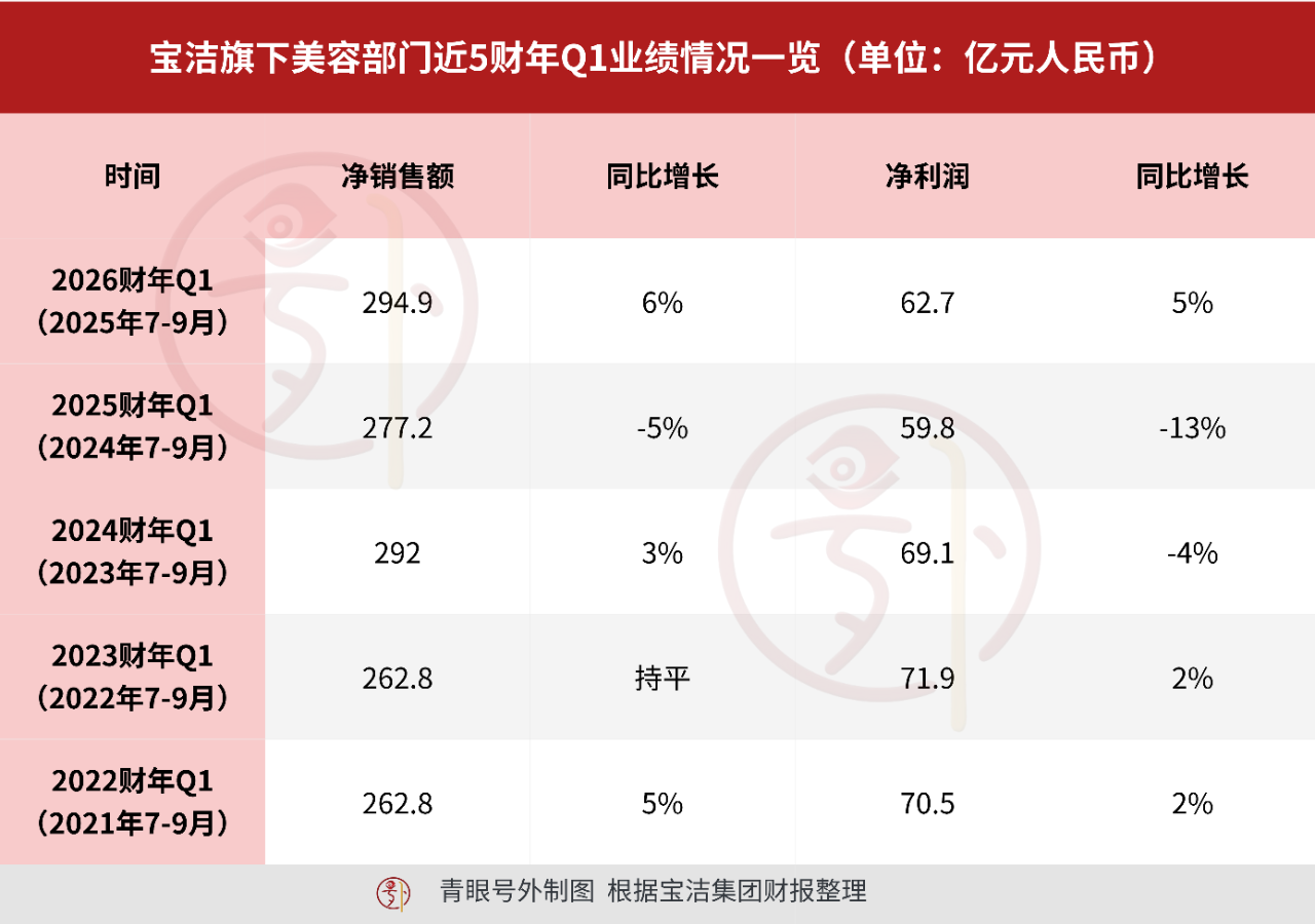 青眼号外梳理了宝洁旗下美容部门在近5财年Q1的业绩情况发现,该部门在今年7-9月的净销售额、净利润的增幅均为历年最高。且从净销售额来看,该部门还创下了5年同期最高值。