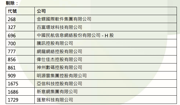 10月31日,恒指公司发布通告,恒生资讯科技业指数将改名为恒生半导体产业主题指数,其编算方法亦将有以下更新:更改指数目的、选股范畴、行业要求、成份股挑选方法、加权方法和比重上限设定;新增流动性要求、主题要求和缓冲区;成份股数目固定为40只。此新编算方法已于截至2025年6月30日之指数检讨中采用,指数的重新命名及相关的成份股变动将于2025年11月7日(星期五)生效。指数代码将维持不变。此外,恒生半导体产业主题指数成份股将有变动,于2025年11月7日(星期五)生效。成份股数目从45只减少至33只。
