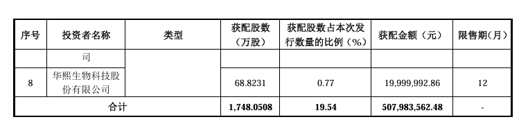 值得一提的是,据禾元生物10月发布的公告显示,华熙生物为禾元生物的战略投资者。公告显示,华熙生物作为战略投资者获配68.8231万股,获配金额约为2000万元,占禾元生物本次发行总股数的0.77%,占禾元生物总股本的0.19%,限售期为12个月。