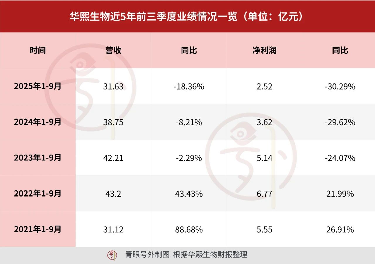 10月28日晚间,华熙生物发布2025年第三季度报告。财报显示,该公司在前三季度营业收入为31.63亿元,同比下滑18.36%;净利润为2.52亿元,同比下滑30.29%;扣非净利润更是同比下43.2%至1.85亿元。
