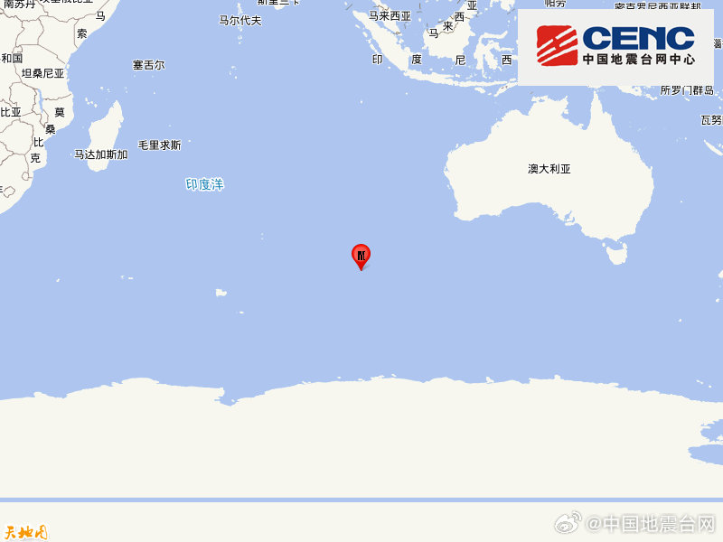 中国地震台网正式测定:11月01日04时53分在东南印度洋海岭(南纬45.15度,东经97.00度)发生6.0级地震,震源深度30千米。