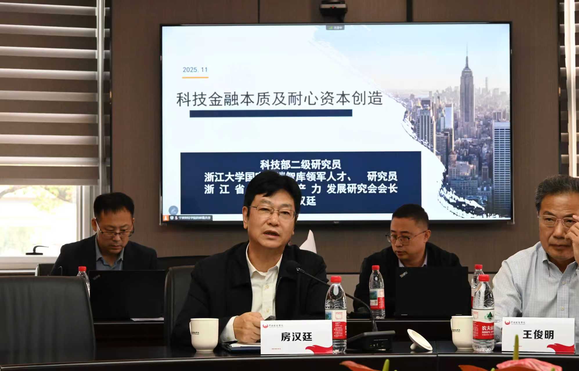 11月2日,由海曙区人民政府指导、宁波市科学技术局支持的“甬商新质生产力与科技金融研讨会”在宁波财经学院隆重举行。本次论坛作为宁波市推动新质生产力发展的重要学术活动,汇聚了来自科技部、知名高校及金融投资界的权威专家,围绕技术资本化、国际人才合作、科技金融深度融合、区域产业适配等关键议题展开深度研讨。与会专家从理论创新和实践探索两个维度,为宁波打通“科技-产业-金融”良性循环提供了系统性的解决方案,也为长三角地区科技创新与金融资本深度融合提供了有益借鉴。