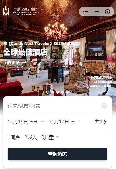 立鼎世酒店集团正式推出官方预订小程序,将全球400余家独立奢华酒店资源整合上线。这些独立奢华酒店位于国际地标、热门城市及小众避世目的地。11月全新上线的预订小程序,方便旅行者第一时间获取出行灵感。