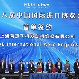 2025年11月5日,第八届中国国际进口博览会在国家会展中心(上海)开幕。当日下午,第八届进博会首单成功落地青浦。采购商上海普惠飞机发动机维修有限公司与参展商国际航空发动机公司(IAE)签署了价值超亿美元的V2500发动机零部件采购订单。