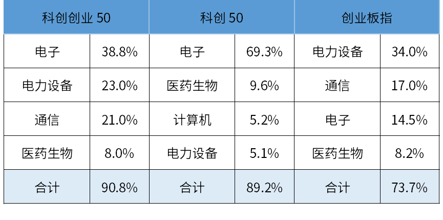 图:科创创业50指数行业配置相比科创50指数、创业板指更均衡