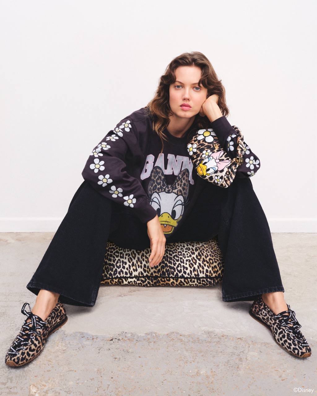 丹麦时装品牌GANNI宣布与迪士尼首次合作,推出全新联名胶囊系列,以迪士尼经典角色黛丝(Daisy Duck)为灵感,重释品牌标志性的“GANNI Girl”态度。系列以GANNI的代表性元素重新演绎黛丝的经典造型——豹纹印花、扣饰芭蕾鞋及西部靴等单品焕新登场,搭配针织、毛衫及BOU BAG与帆布托特包等配饰,以趣味印花呈现独特活力。