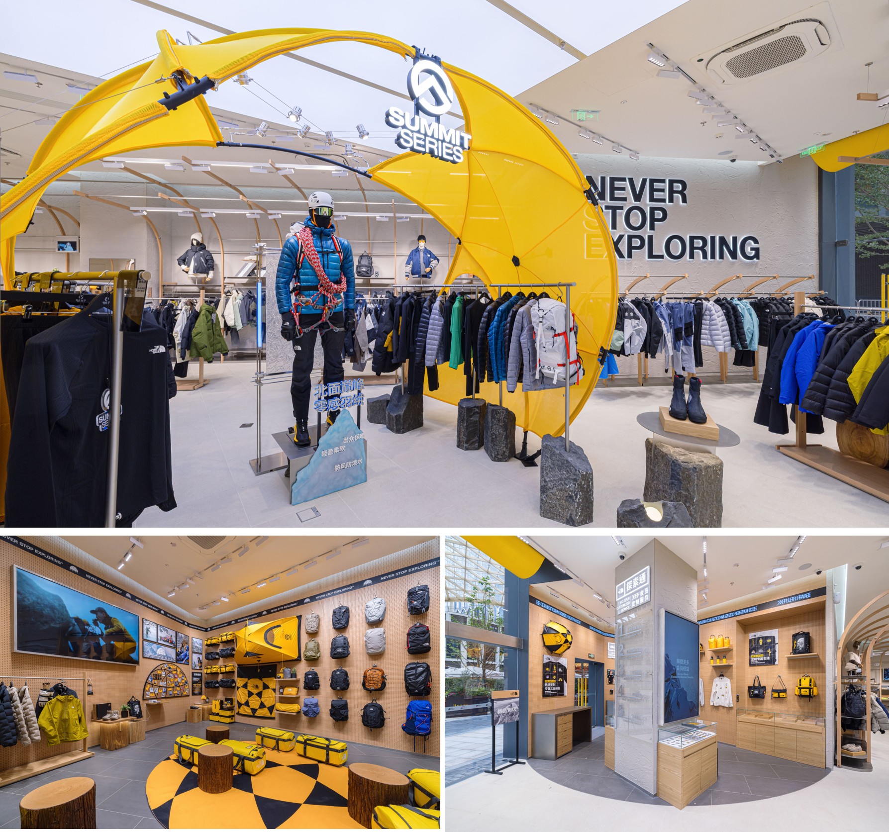 开幕当天,品牌邀请国际攀登运动员、奥斯卡奖纪录片导演金国威(Jimmy Chin)与登山家吉姆·莫里森(Jim Morrison)到场,分享珠峰探险经历,传递“探索永不停止”的品牌精神。The North Face亚太区副总裁兼总经理董力表示,品牌正通过零售空间的战略性升级,让实体门店成为户外文化的精神原点。VF威富集团亚太区总裁马文补充道,中国是集团全球第二大市场,未来将持续强化零售与数字化能力,深耕本地创新与体验,携手消费者共塑户外生活新文化。