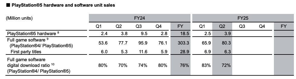 11月11日,索尼集团在财报中披露,2025财年第二季度(截至9月底)PlayStation5主机销量为390万台,上年同期为380万台。