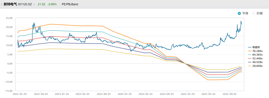 当前新特电气的估值水平,很大程度上反映了市场对其新兴业务,特别是固态变压器和数据中心领域的高预期。从市盈率角度看,公司估值已来到历史高位。SST技术虽前景广阔,但目前公司相关产品仍处于研发阶段。从实验室到大规模量产和市场接受,需要时间和过程。一旦SST的商业化进展不及预期,或数据中心市场开拓缓慢,股价将面临巨大的回调压力。