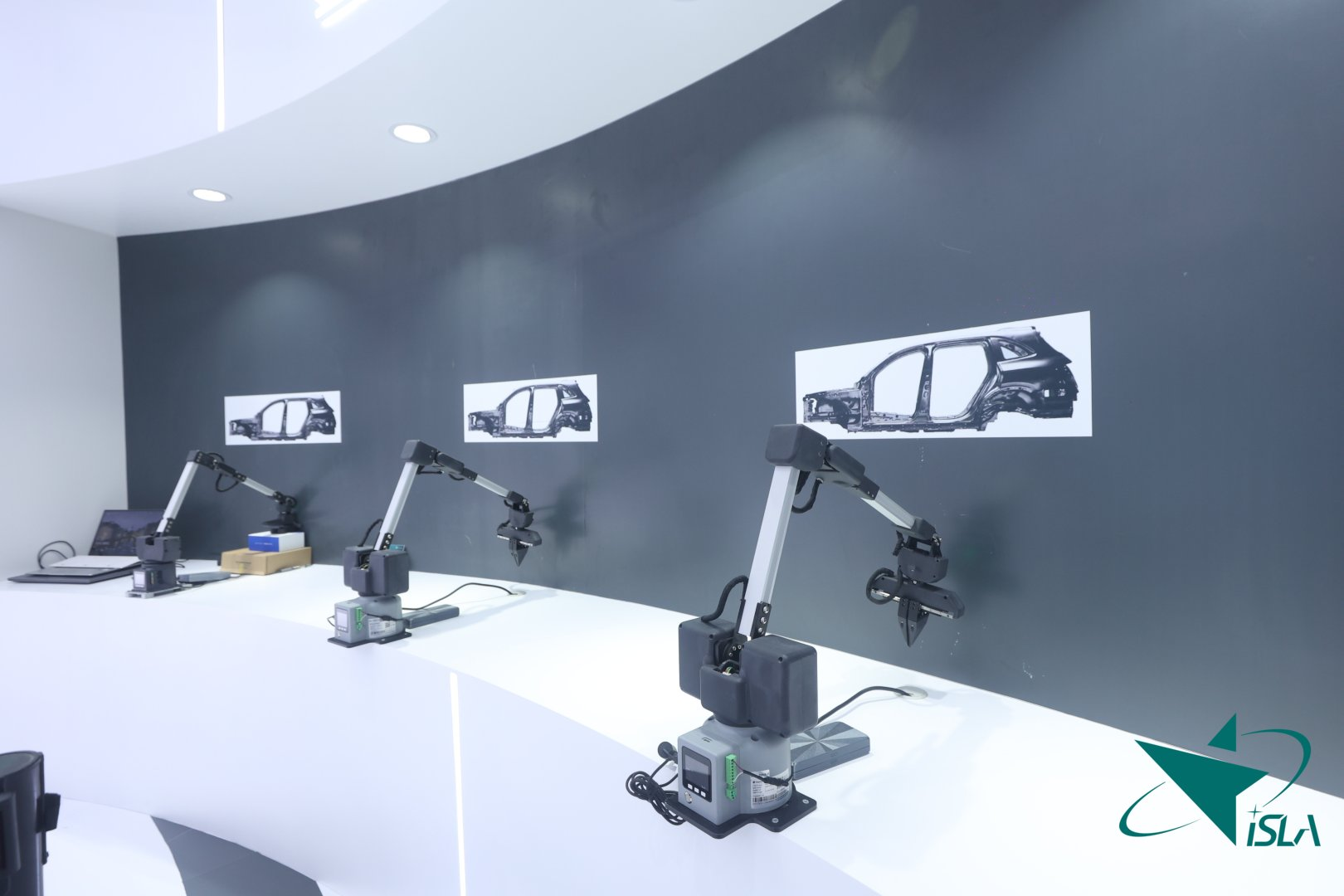 展区中央,一台搭载星闪模组的机械臂与投屏设备实时协作。观众通过手机操作,可实时控制机械臂动作并在大屏上同步显示内容。该方案展示了星闪在工业自动化、创意设计、智慧办公等领域的巨大实力潜力。