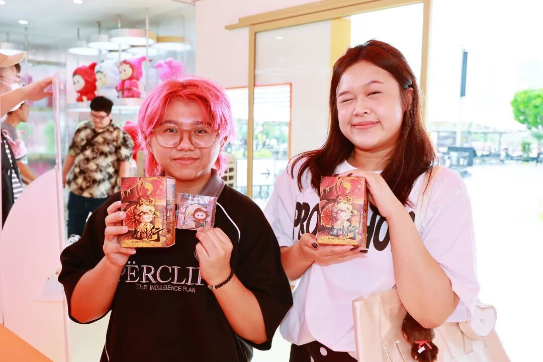 另一方面,海外限定盲盒“MIMI-九州行”系列同步推出。设计师HUHU更亲临现场讲解,坐在矮桌后和粉丝交流中式古典美学元素。这种不是卖货,而是交朋友的仪式感,让不少粉丝带着收藏多年的 MIMI 手办提前三小时到场。