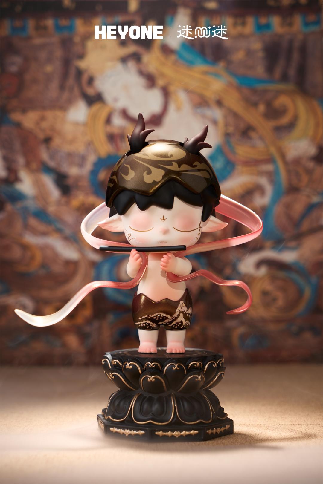 比如MIMI的“浮音长歌”系列,首次将涂装工艺用于手办。还用深海贝母研磨成 0.1mm 的螺钿薄片,按敦煌九色鹿纹路镶嵌,光线折射时能看到流光溢彩的敦煌壁画质感;每一处细节都在说国风不只是元素,更是能触摸的质感。