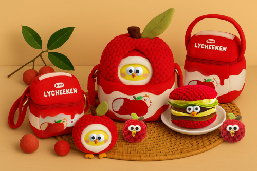 此次合作中,名创优品定制开发了“荔枝墩墩鸡”系列萌趣产品。设计团队巧妙融合广府文化,将广州标志性水果“荔枝”的形态,与活泼可爱的原创IP“墩墩鸡”形象相结合,使其成为一款既承载文化、又传递祝福的城市伴手礼。
