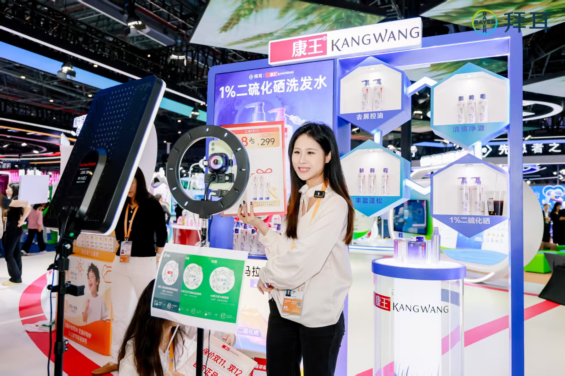2025年11月初,第八届中国国际进口博览会如期召开。拜耳消费健康事业部展区的一角,一个特殊的抖音直播正实时连接着屏幕内外的消费者 —— 这是康王品牌在进博会上的重要露出,让消费者足不出户就能 “走进” 拜耳展台,直观感受康王品牌对头皮与毛发健康管理的专注。