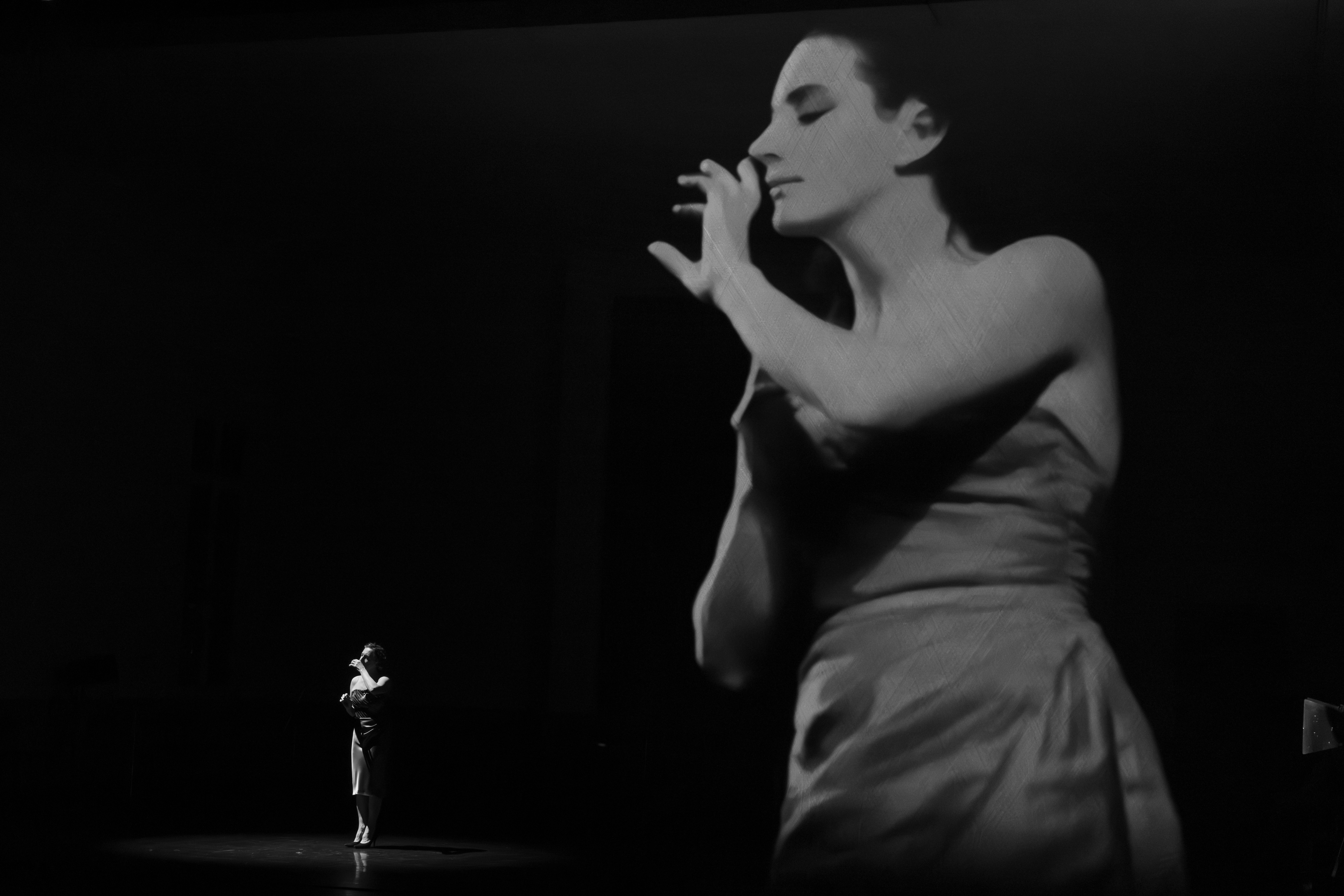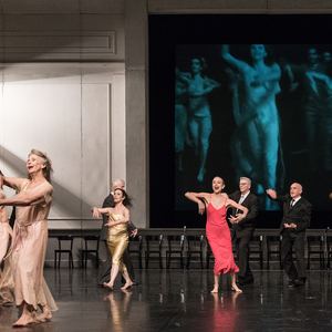 将近五十年后,这一幕变成了一段黑白影像,被投影在舞台上方,仿佛一具巨大的幽灵。画面中的那位女人,此刻正独自站在投影前,默默看着年轻的自己,然后转身离去。她叫梅丽尔·坦卡德(Meryl Tankard),今年70岁,是《交际场》的舞者,也是新版《交际场:回响1978》的导演。