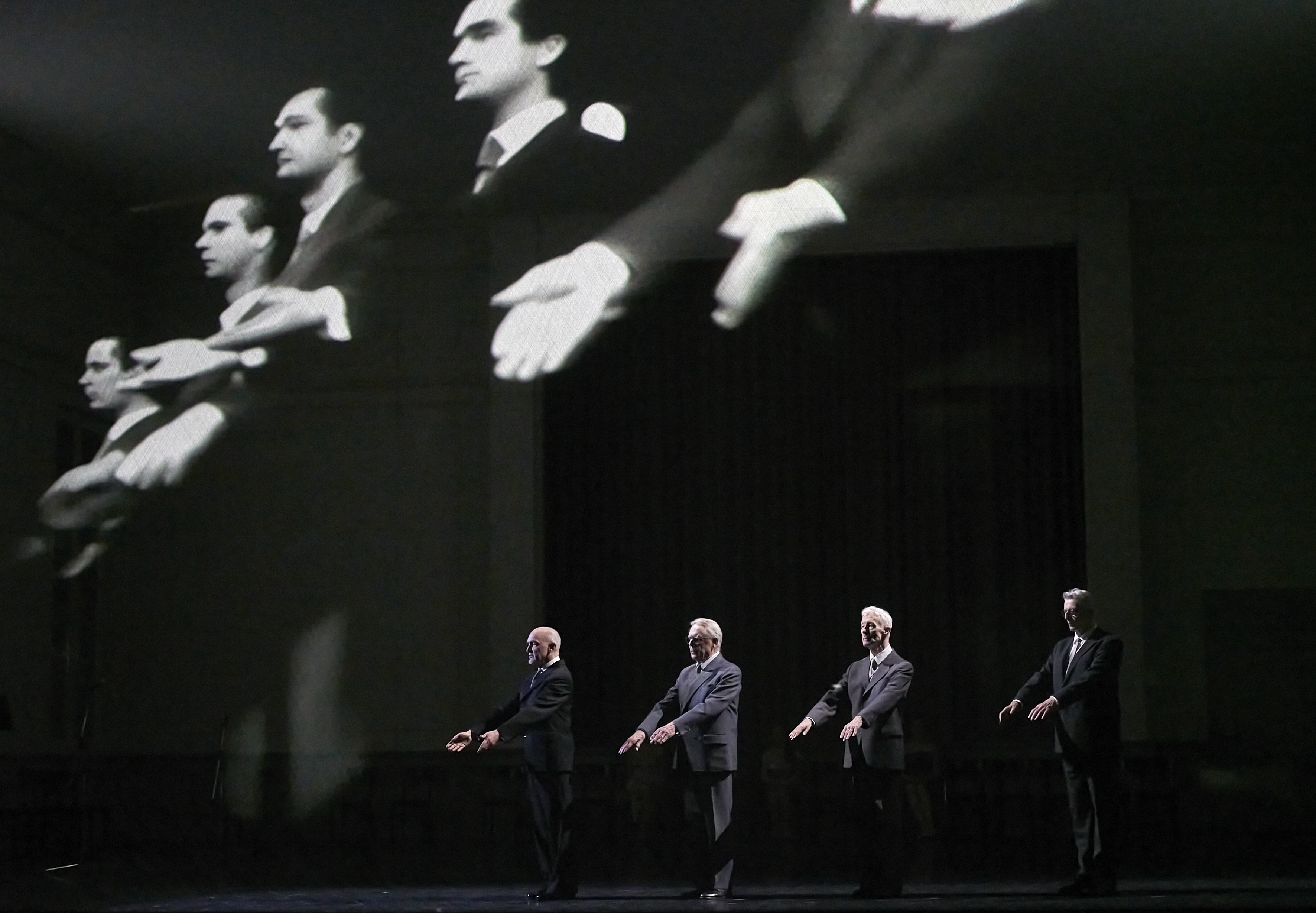 与衰老相对应的,是生命经验的累积。在舞台上,吉芬有时候会看向投影里那个年轻的自己,“我并不会去模仿他,或是与他竞争,我会评论他,年老的约翰看向年轻的约翰,这对我来说有一种智识上的趣味,它是一个后现代瞬间。”