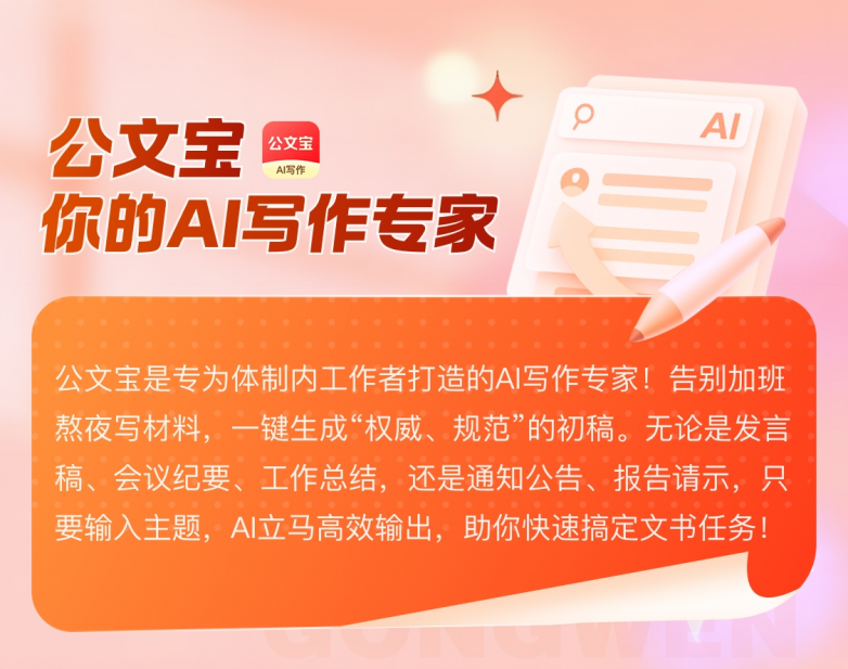 公文宝已全面上线,只需在浏览器搜索“公文宝”或通过各大应用商店下载APP,即可立即体验AI公文写作的强大魅力!