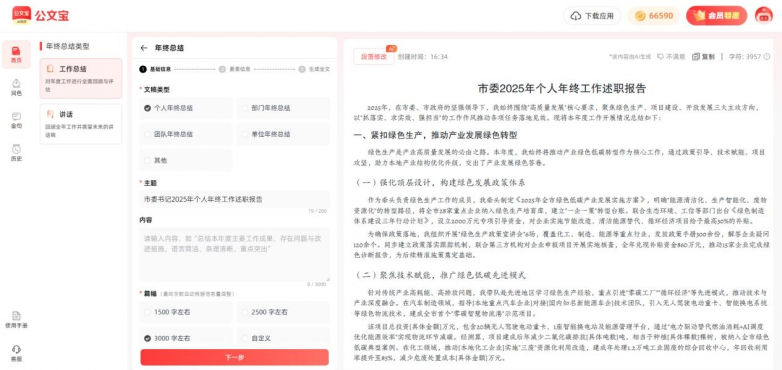 根据内部测试数据显示,一篇3000字的年度总结,传统方式需耗时10小时以上,而使用公文宝仅需3小时即可完成初稿加润色,效率提升5倍以上。这不仅解放了个人时间,更在团队协作中显著提升整体工作效能。