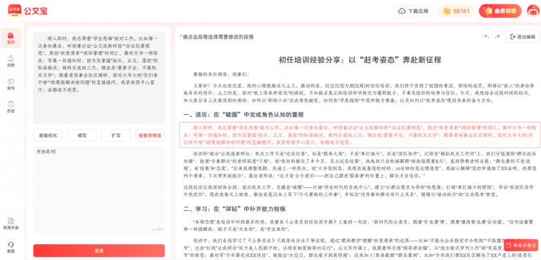 写作过程中难免反复调整。公文宝支持即时修改功能,用户可选取文章中任意不满意部分,系统立即进行二次优化或重写,大幅减少修改时间,让写作流程更流畅。