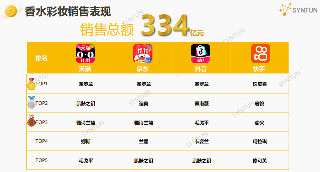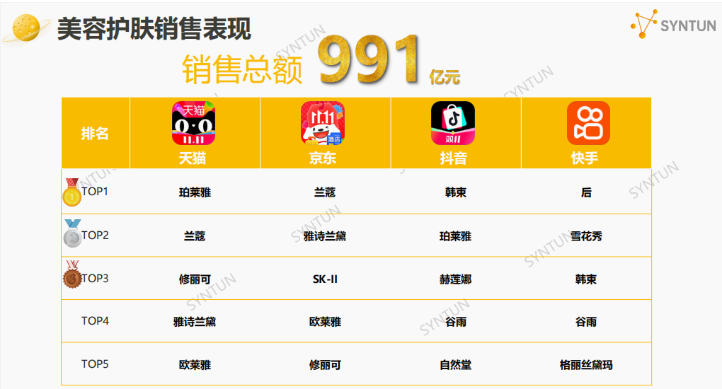 其中,个护美妆品类全网销售额同比增长8.2%,美容护肤、洗护清洁、香水彩妆三大品类销售总额分别达991亿元、444亿元、334亿元。