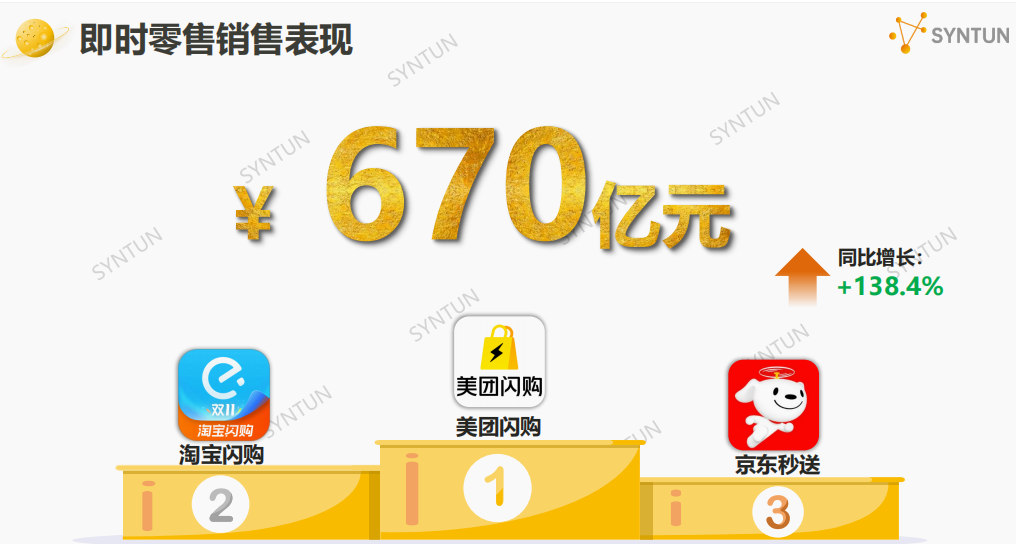 基于此,面对日益分散的注意力,各大平台开始调整大促策略。无限拉长大促周期以推动消费的长效机制的背后,是“即时零售”这一增量市场的激烈争夺,而这也成为本届双11最大看点之一。根据星图数据,今年双11,即时零售销售总额达670亿元,同比大涨138.4%,美团闪购、淘宝闪购、京东秒送占据前三地位。