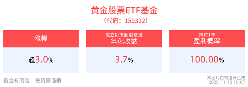 回撤方面,截至2025年11月12日,黄金股票ETF基金今年以来相对基准回撤3.00%。