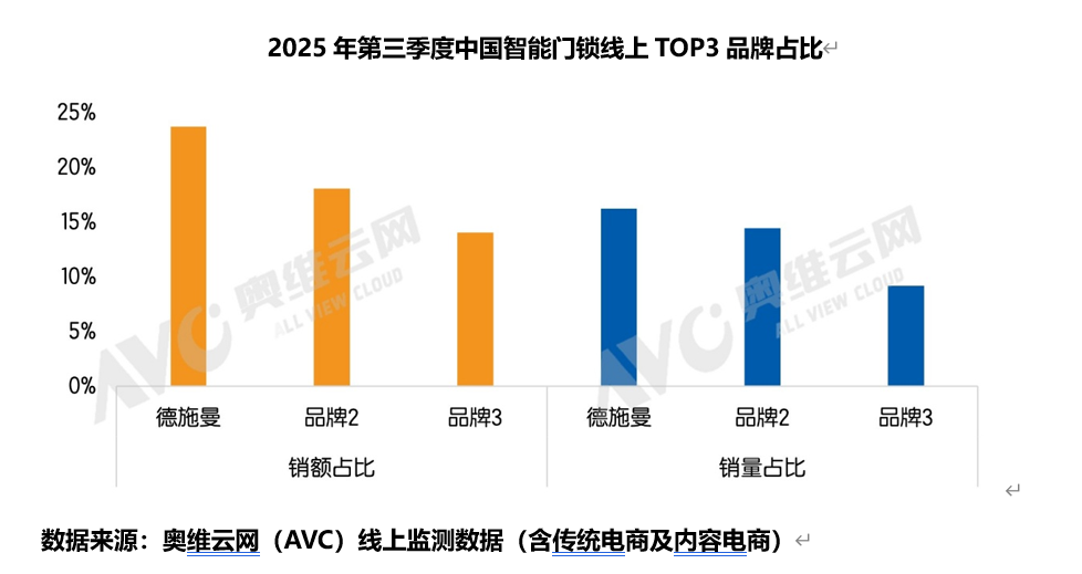 据奥维云网最新数据显示,2025年第三季度,德施曼在线上市场实现零售额与零售量双第一的全面领先。结合618与双11双冠战绩及权威机构数据,德施曼已提前锁定2025年智能锁销冠。