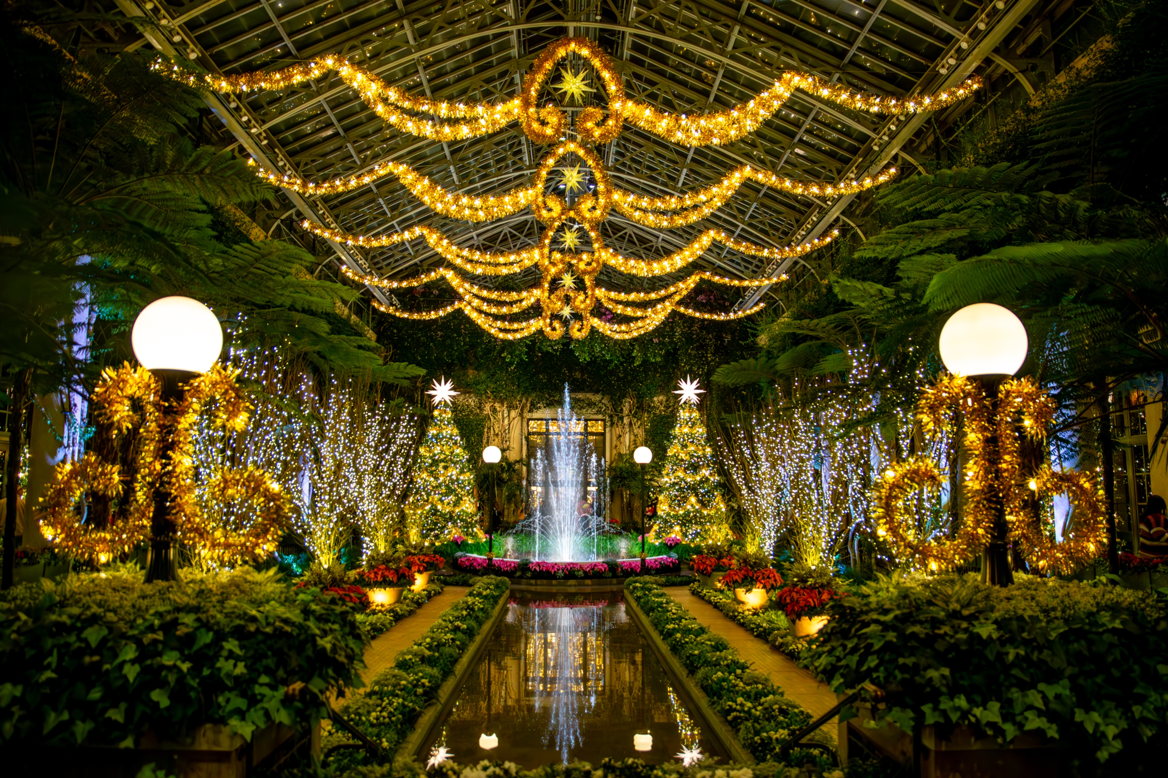 费城郊区的长木花园推出“长木圣诞”活动,1000多英亩园区内,装饰精美的树木与假日灯展交相辉映,还有温馨篝火坑,夜晚50万盏彩灯点亮园区。冒险水族馆的“水下圣诞”活动同样精彩,每日有潜水圣诞老人表演,还能观赏全球最大水下圣诞树等特色景观。