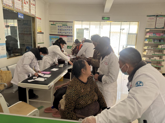 “活动当天清晨,中医馆大厅已排起长队,不少群众带着既往病历、检查报告早早等候。义诊现场,专家团队不仅提供一对一问诊、体格检查、病情诊断等服务,还免费提供血尿酸快速筛查、血糖、血压检测、关节压痛评估等项目,针对符合适应症的患者,专家团队免费开展了原价1576元/部位的“经筋刀+臭氧”特色治疗和原价32元/部位的“中药贴敷”治疗。县民族医院安排工作人员全程陪同就诊群众,协助完成挂号、检查、取药等流程,为语言沟通不畅的少数民族群众提供现场翻译服务,让暖心服务贯穿诊疗全过程。