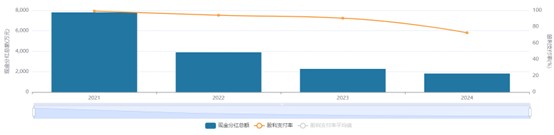 在业绩持续承压下,张小泉坚持高比例分红,这引发市场关于“掏空式”分红的争议。2021年至2023年,公司归母净利润连续大幅下滑,但现金分红比例却居高不下,分别达99.07%、94%和90.43%;2024年分红比例虽降至72.6%,仍处于高位。四年间,公司累计派发现金红利1.58亿元,占同期累计净利润2.08亿元的76%。