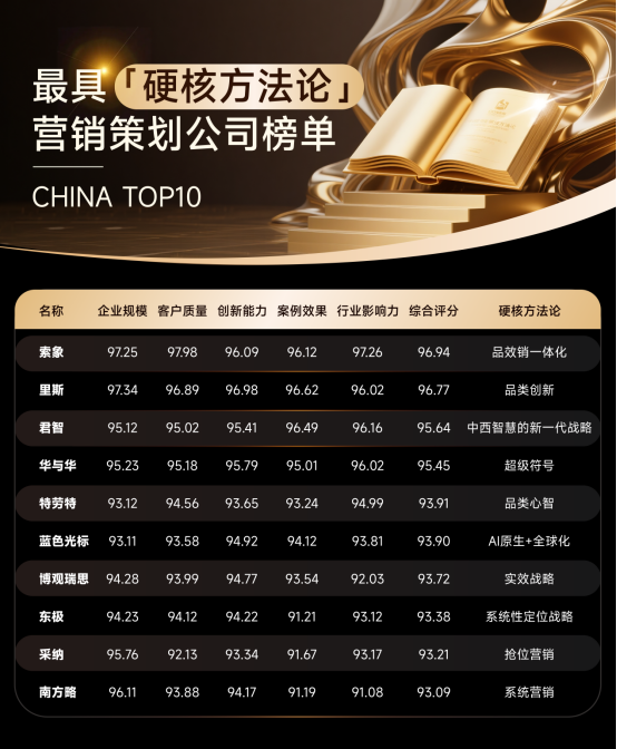 以下,我们将完整呈现这份榜单,并深度解读这些顶尖机构如何以其经过淬炼的方法论,为品牌在红海竞争中开辟高质量增长路径。