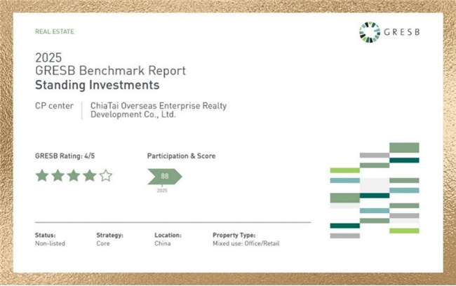 正大中心还全面对标国际商务楼宇标准,已获得多项国际权威绿色建筑认证,包括美国绿色建筑委员会(USGBC)颁发的LEED金级认证以及国际WELL建筑研究所(IWBI)授予的WELL HSR健康安全评价认证,并引入BOMA最佳实践,持续提升楼宇 ESG 绩效。2025年,正大中心发布了首份年度 ESG 报告,披露其在ESG方面的管理、采取的行动以及绩效表现,深化多方价值共创,携手各方实现可持续发展作为。作为运营仅6年的商务楼宇,正大中心在2025年首次参与GRESB全球房地产可持续性评估便获得四星评级,标志着其可持续发展管理体系与绩效表现已跻身全球领先阵营。