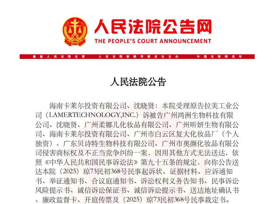 此前,法院已裁定对相关方实施诉前财产保全,冻结金额合计达2500万元。按照诉前保全规则推算,涉案金额至少2000万元,创下近年来国内公开化妆品民事侵权案例最高纪录。