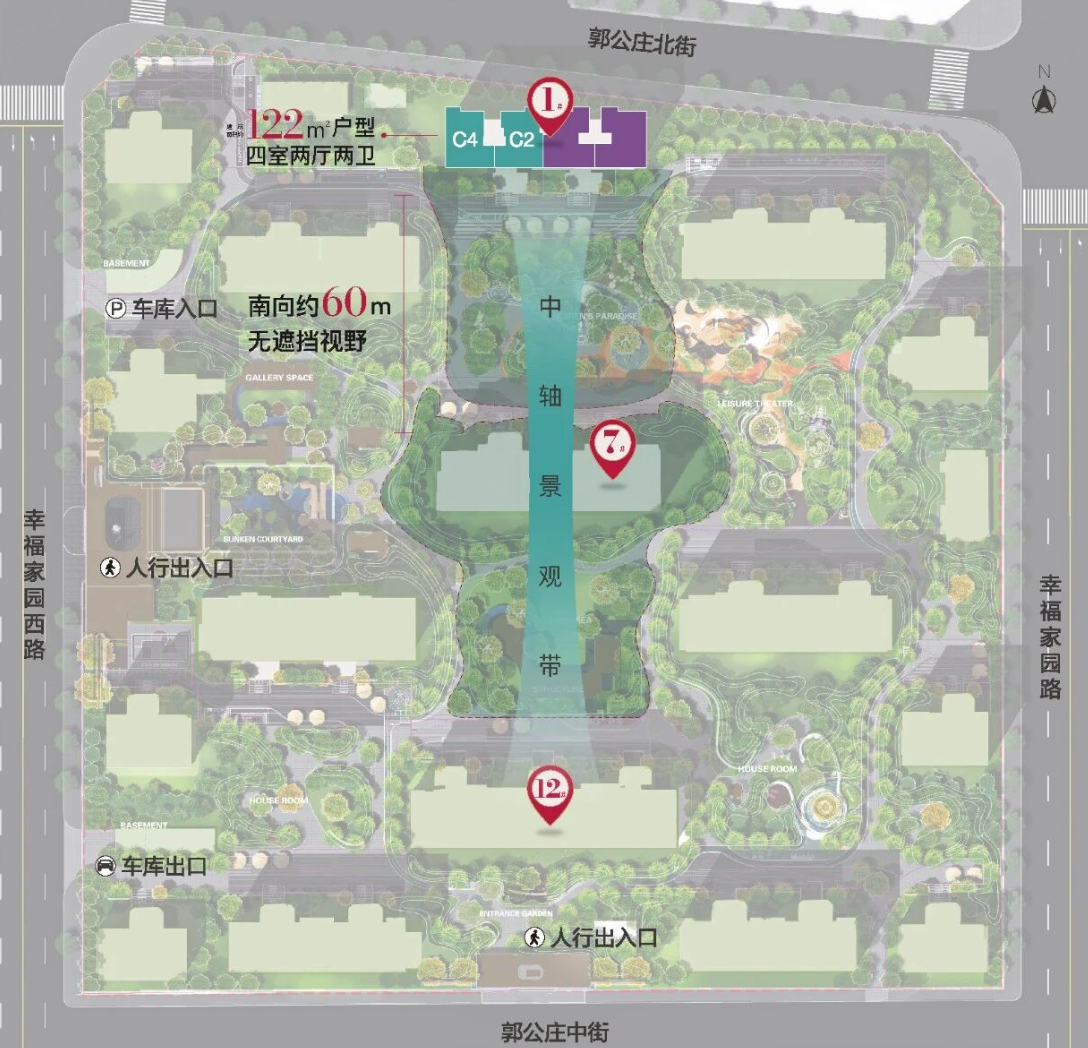 中建・云境1#楼的解法,藏在“中轴占位 + 近距景观”的双重设计里。它与7、12#楼共踞社区中轴,推窗就是无遮挡的中央景观带,不用“挤在阳台看风景”;更关键的是,南向直对社区“趣园”,老人下楼散步、孩子出门玩耍,步行几步就能抵达,自然不再是 “远处的风景”,而是日常起居的一部分。