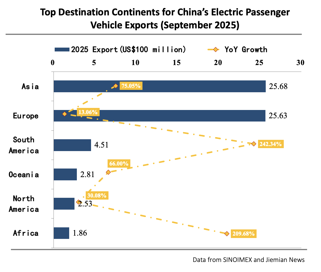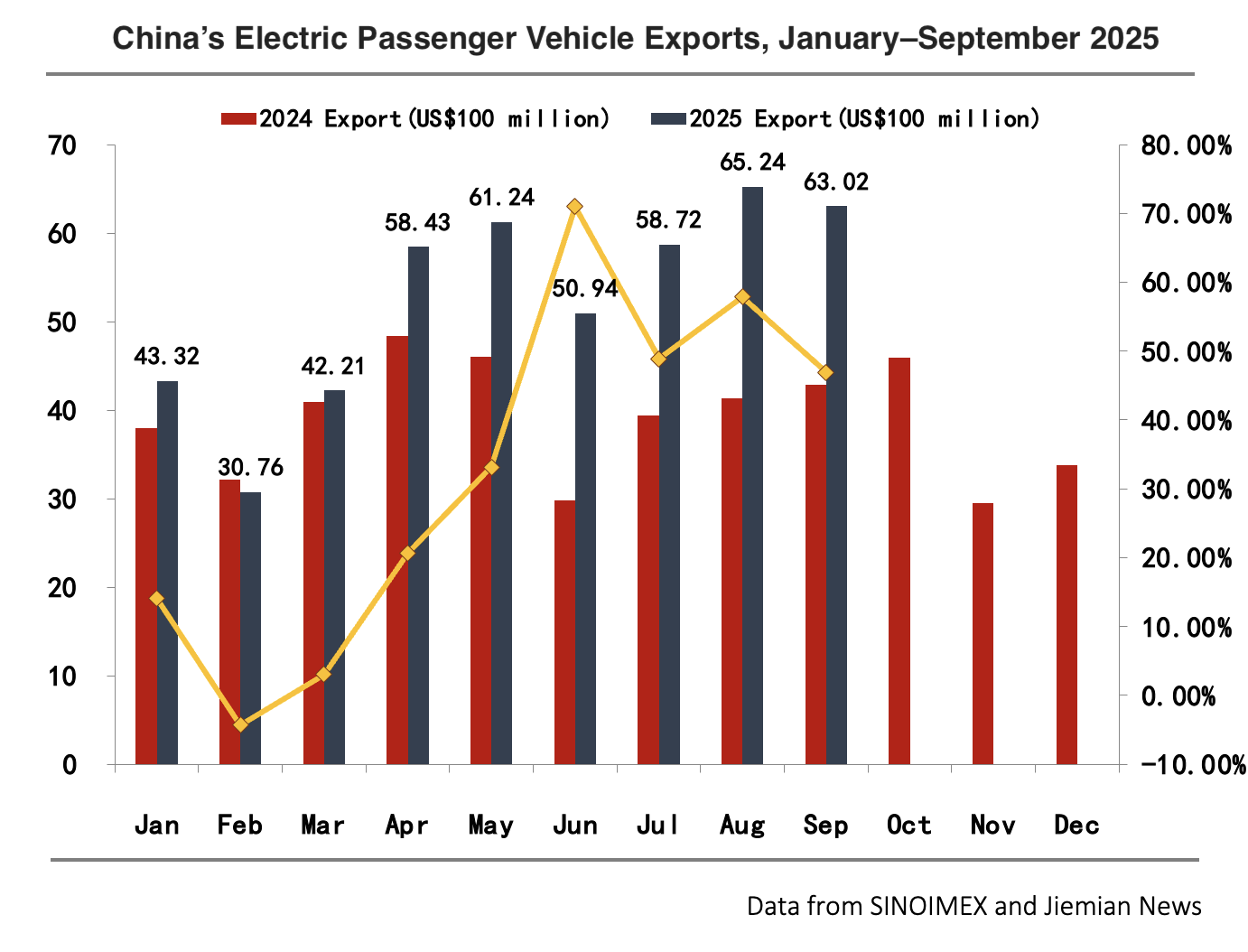 Despite the more complex external environment, China's electric passenger vehicle industry continued to advance its global footprint in September. Emerging markets are providing powerful new growth engines, while Europe and other mature markets are showing signs of steady consolidation.