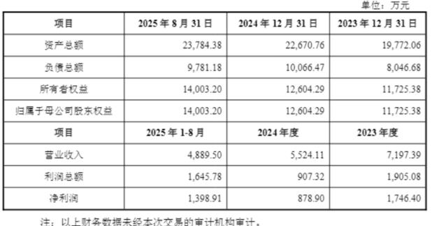近两年来,光隆集成业绩表现犹如过山车,充满不确定性。2023年公司营收7197.39万元,2024年降至5524.11万元,2025年前8月营收4889.5万元。净利润方面,公司2023年为1746.4万元,2024年降至878.9万元,2025年前8月为1398.91万元。