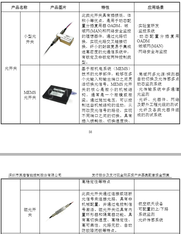 此次收购标的光隆集成主要产品包括光开关、光保护模块,以及光衰减器、波分复用器、环形器等其他光学器件和OCS光路交换机等。