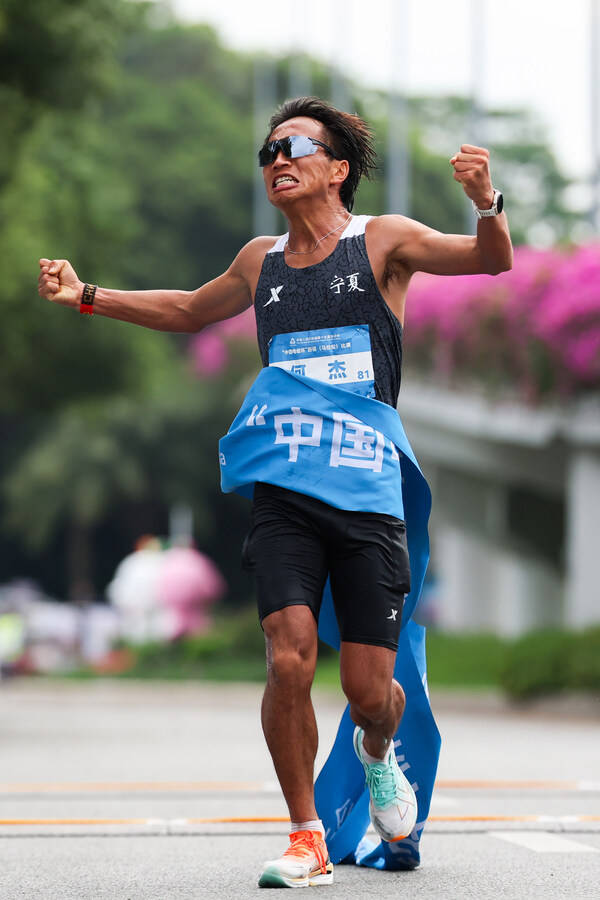 11月15日上午,第十五届全运会马拉松项目在深圳湾体育中心鸣枪开跑。最终,全国纪录保持者、宁夏队选手何杰以2小时12分07秒夺冠,与脚下的特步冠军版跑鞋再度并肩创造历史。