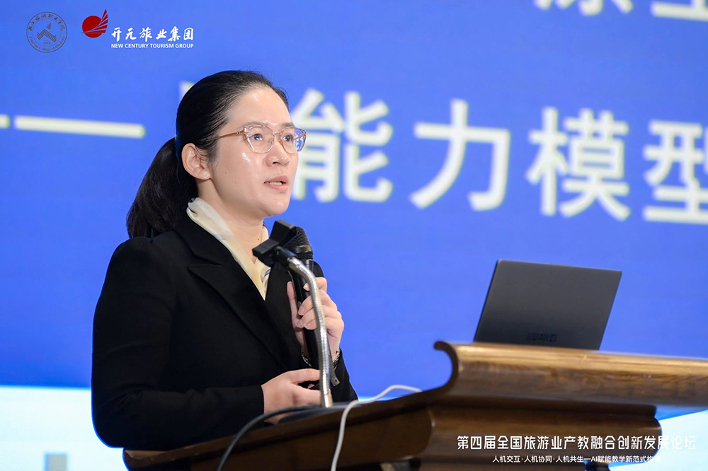 武汉轻工大学现代文旅产业学院院长郭田田女士,在其《AI原生代文旅人才培养——从能力模型到课程体系的系统性革新》的分享中指出,产业学院是产教融合的关键生态载体,其核心路径在于打造育人共同体,旨在破解企业用人痛点、适配学生特质,重构教育逻辑。