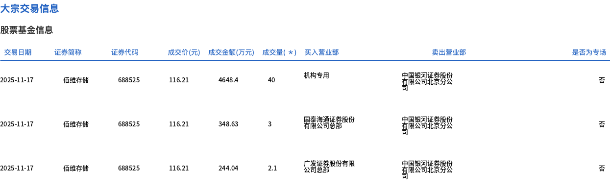 11月17日,佰维存储大宗交易成交45.1万股,成交额5241.07万元,占当日总成交额的0.98%,成交价116.21元,较市场收盘价132.72元折价12.44%。