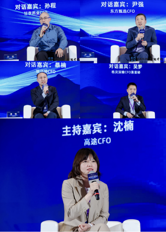 参与高峰对话之《CFO如何助力企业韧性破局》的对话嘉宾包括:甘李药业CFO孙程先生,东方甄选CFO尹强先生,瑞迈特CFO暴楠先生,格灵深瞳CFO兼董秘吴梦先生。本场高峰对话由高途CFO沈楠女士担任主持人。四位对话嘉宾结合所在行业和企业,以一线韧性构建实操经验,碰撞出关于助力企业“韧性破局”的真知灼见。