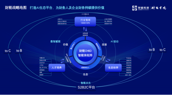 成艳华先生进一步介绍,财能科技已构建起全国头部CFO智库平台与完善的人才培养体系,汇聚数百位生态合作伙伴。目前,财能科技 to B 业务赋能成效显著,未来将进一步延伸 to C 服务能力,最终形成智能共生的S2B2C平台,打造财会领域新物种。