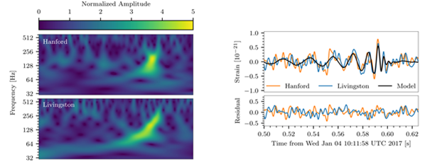 通过比对此次观测的波形和不同参数模型,LIGO的科学家们得出结论:此次发现的引力波事件和之前的两例类似,也是来自于两个黑洞的合并。