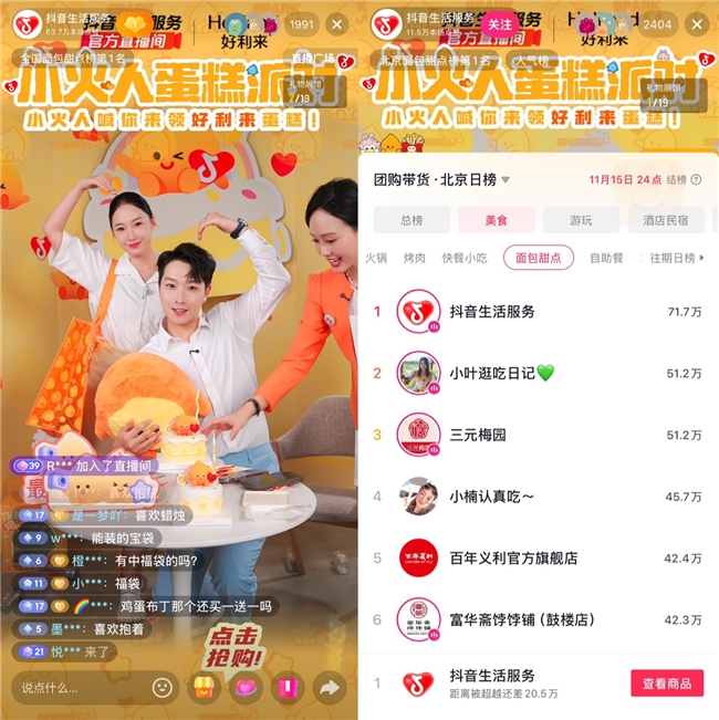 11月16日,好利来在抖音生活服务开启“小火人”专场直播