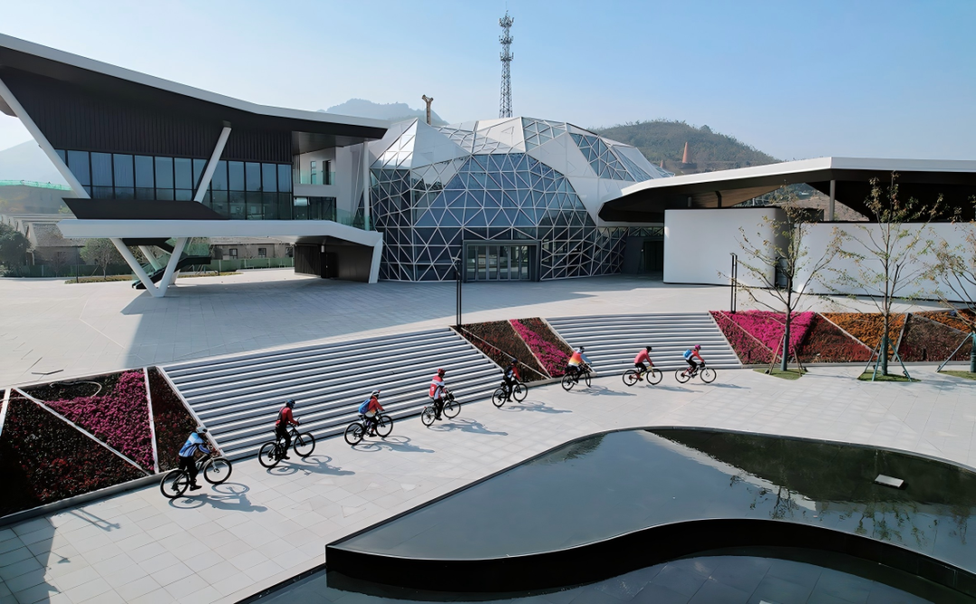 融合工业遗产和现代美学的矾山游客接待中心屹立山下,散发着独特的魅力。在这片充满活力的土地上,千年矾都正稳步迈向新的发展阶段。